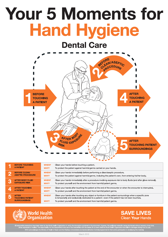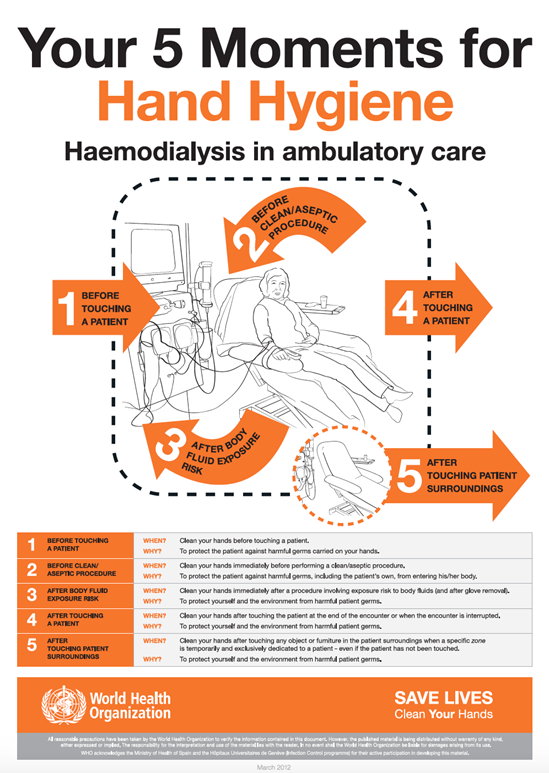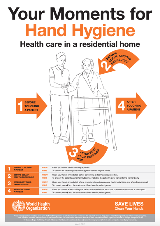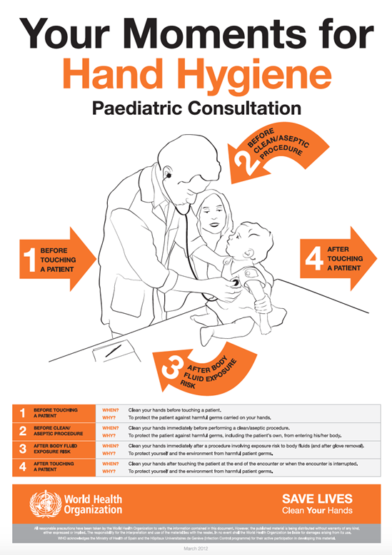 The My 5 Moments for Hand Hygiene approach defines the key moments when health-care workers should perform hand hygiene. This evidence-based, field-tested, user-centred approach is designed to be easy to learn, logical and applicable in a wide range of settings.